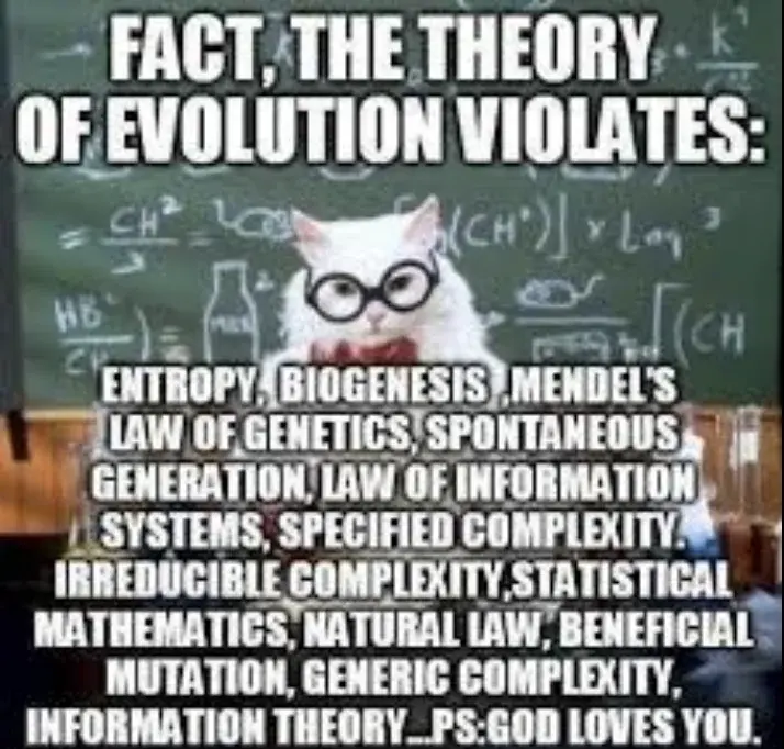 SSUPII@sopuli.xyzM · edit-221 days agoEvolution has been declared not sciencesopuli.xyzimagemessage-square3fedilinkarrow-up17arrow-down13