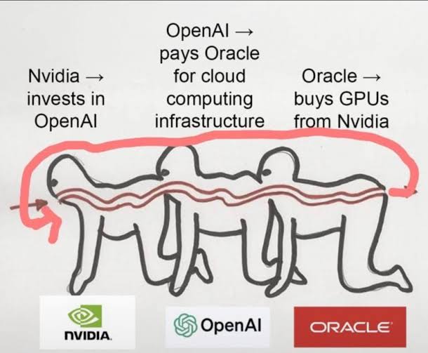 W dodatku doszliśmy do momentu w stylu “jak masz 10kPLN kredyt w banku, to bank Cię ma; jak masz 100m kredyt w banku, to masz bank”. Banki mają bardzo niski (na poziomie 1.5%) margines tego, ile kasy w kredytach może się “zepsuć” (w sensie, kredyt niespłacalny, kasa idzie w stratę). Jak ten margines zostanie przekroczony dla danego banku, bank staje się niestabilny finansowo. Więc zaraz będzie “too big to fail”, a na razie wszyscy udają, że nie, totalnie te miliardy dolarów wpompowane przez Softbank w “AI” – z których dużo Softbank pożyczył z innych banków! – nie są absolutnie stratą i to się wszystko zepnie.