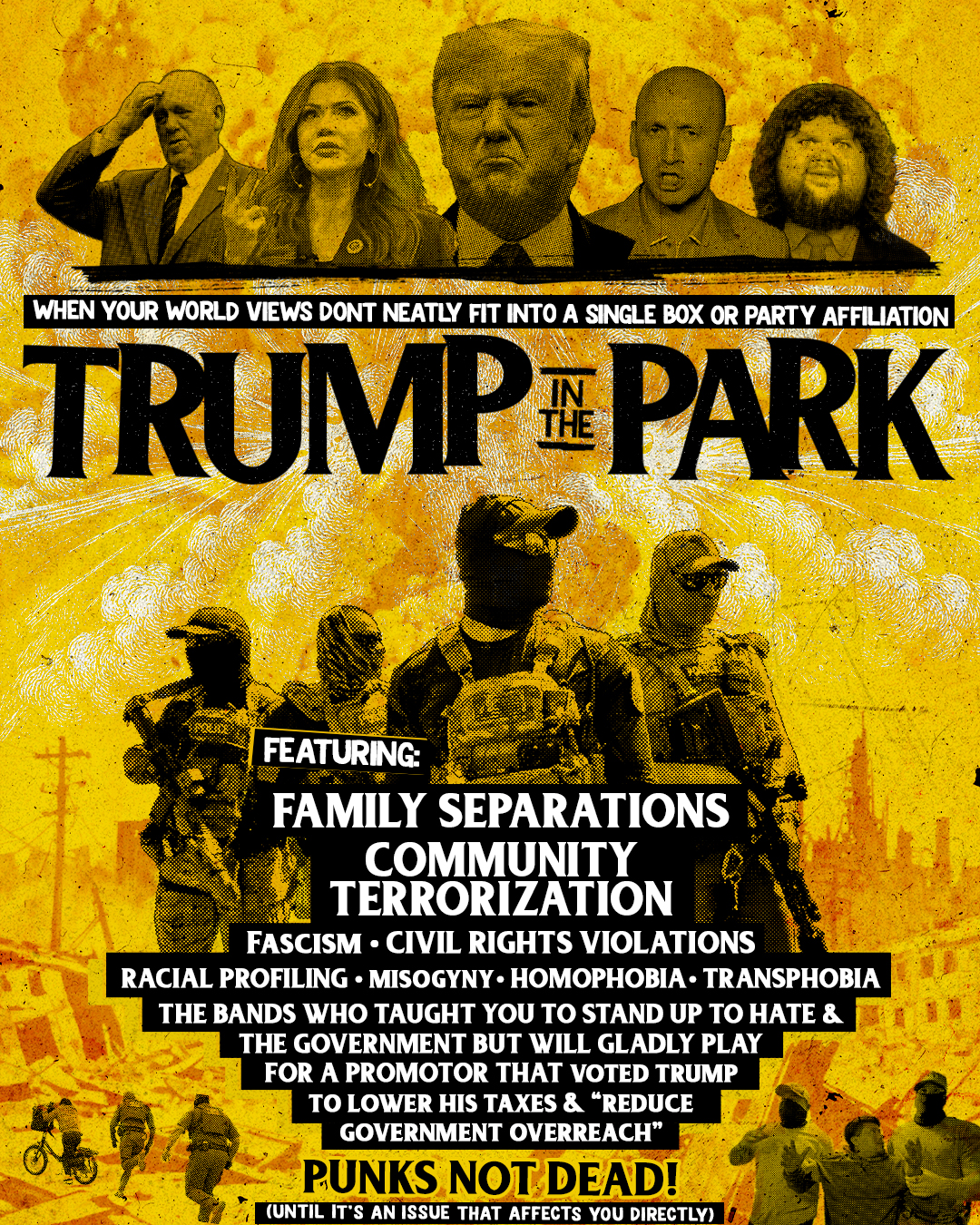 The organizer donated $255 to Trumps campaign… It’s not good, and there’s certainly a line to be drawn in doing business with non-politically aligned folk, especially when it comes to the punk ethos. However, remember the enemey isn’t your neighbor who voted for Trump. And it’s not even the $400k/yr income business owner or tech bro in the fancy neighborhood across the street. It’s the leisure class billionaires and oligarch fascists that have more money than God and don’t lift a finger to whipe their own asses.