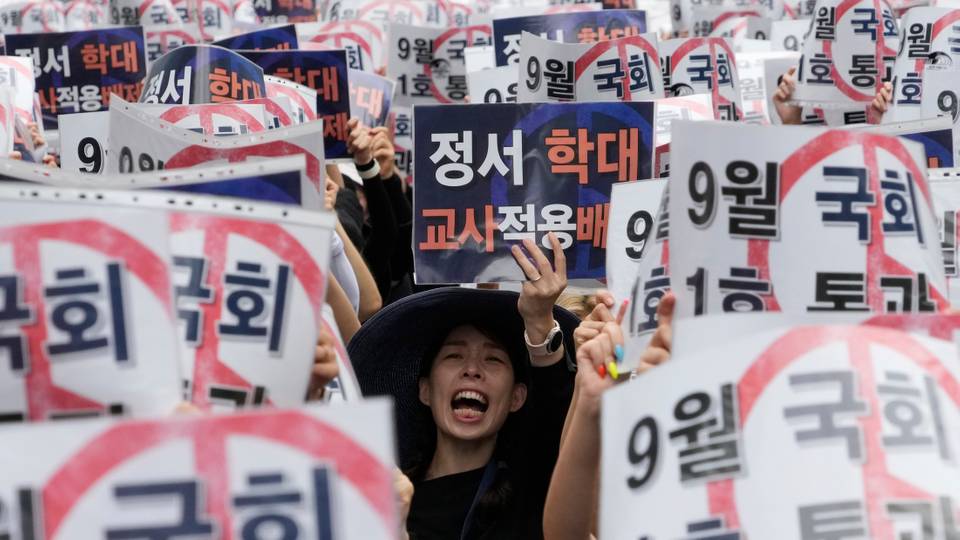 The protesting teachers, who have rallied for weeks, say current laws make it difficult to exercise control over their classrooms and leave them at the mercy of overbearing parents, who could easily accuse them of emotionally abusing children.