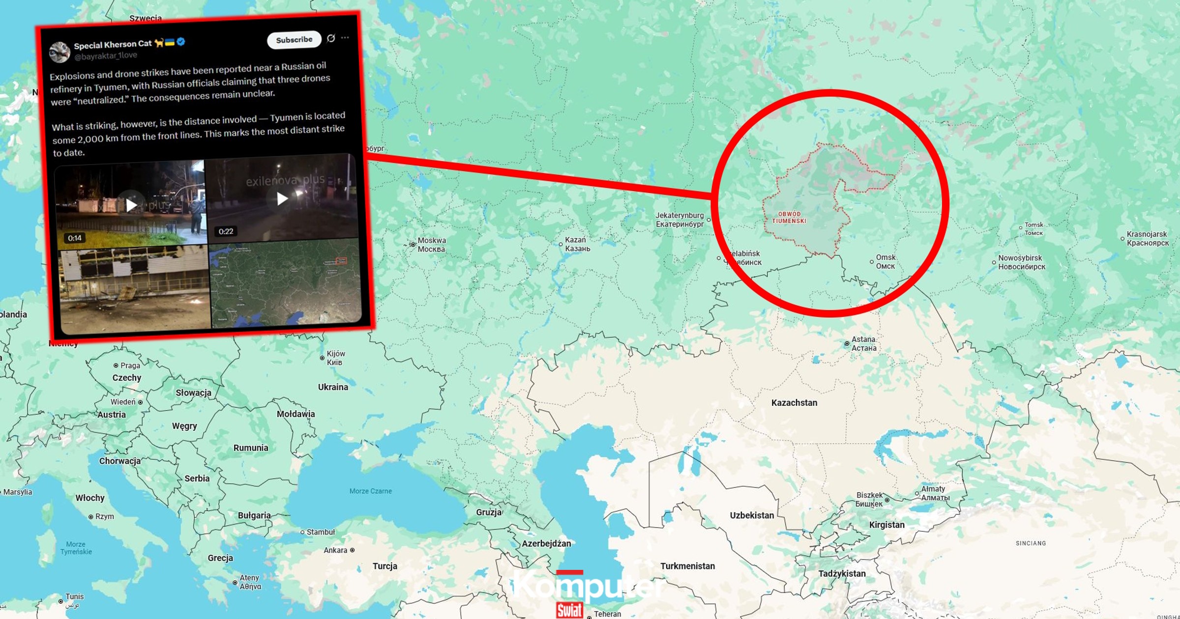 Lokalne władze w obwodzie tiumeńskim donoszą o próbie ataku na tamtejszą rafinerię ropy naftowej. Nie byłoby w tym nic dziwnego, gdyby nie fakt, że mówimy tu o kompleksie położonym około 2 tys. km od Ukrainy! Oznaczałoby to, że Kijów przeprowadził właśnie uderzenie o rekordowym zasięgu.