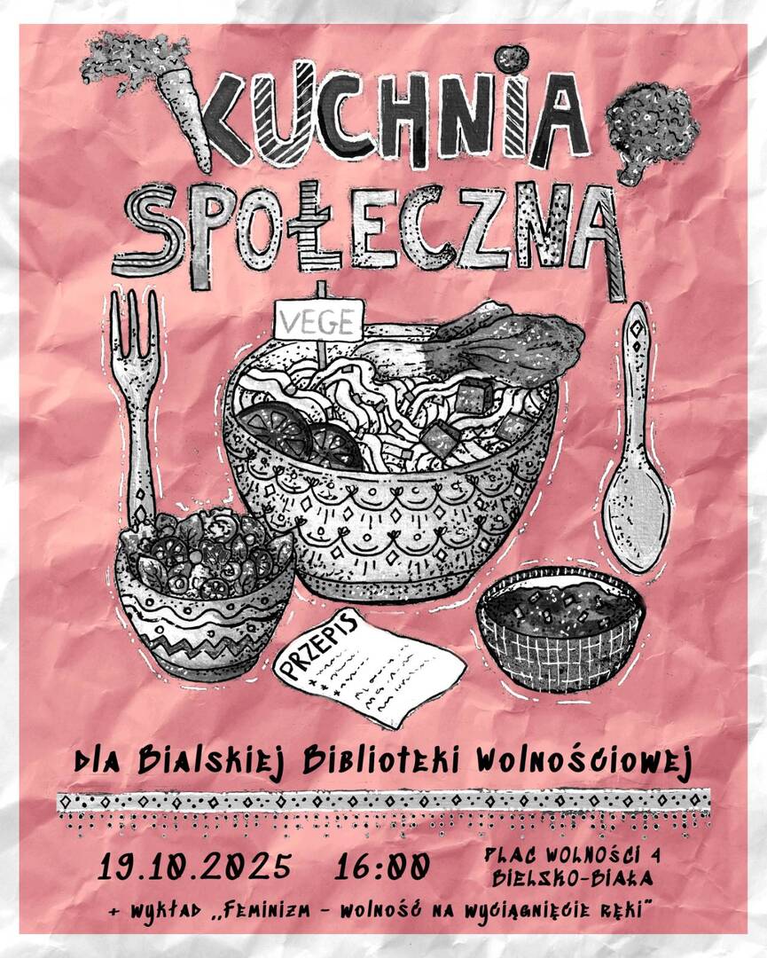 Zapraszamy Was wszystkie na roślinną kuchnie społeczną, na której spotkamy się z kolektywem bibliotecznym dbającym o dostępność #bibuły na placu Wolności.