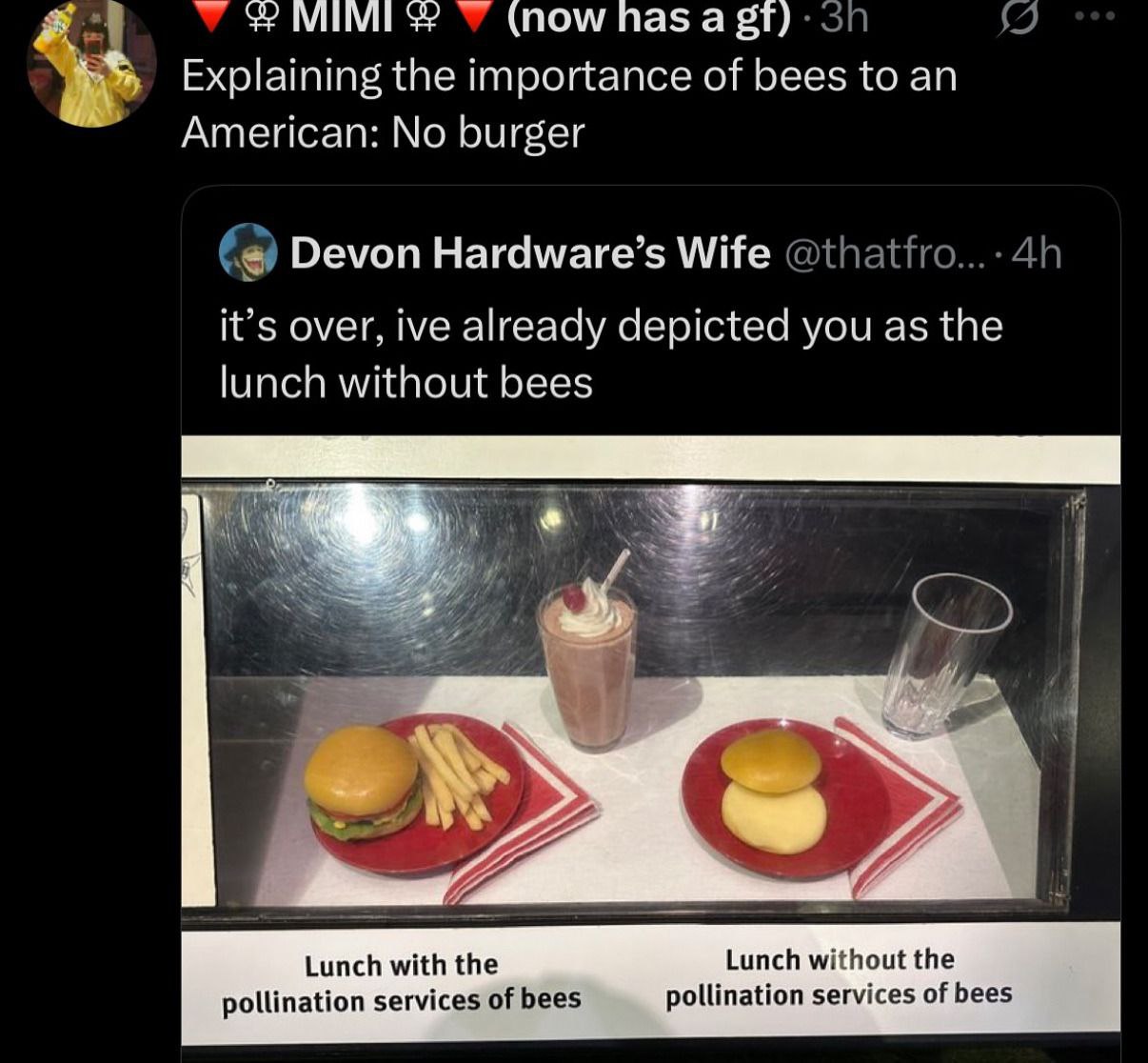 I think maybe you could argue cows are largely fed pollinated crops when raised in a feedlot