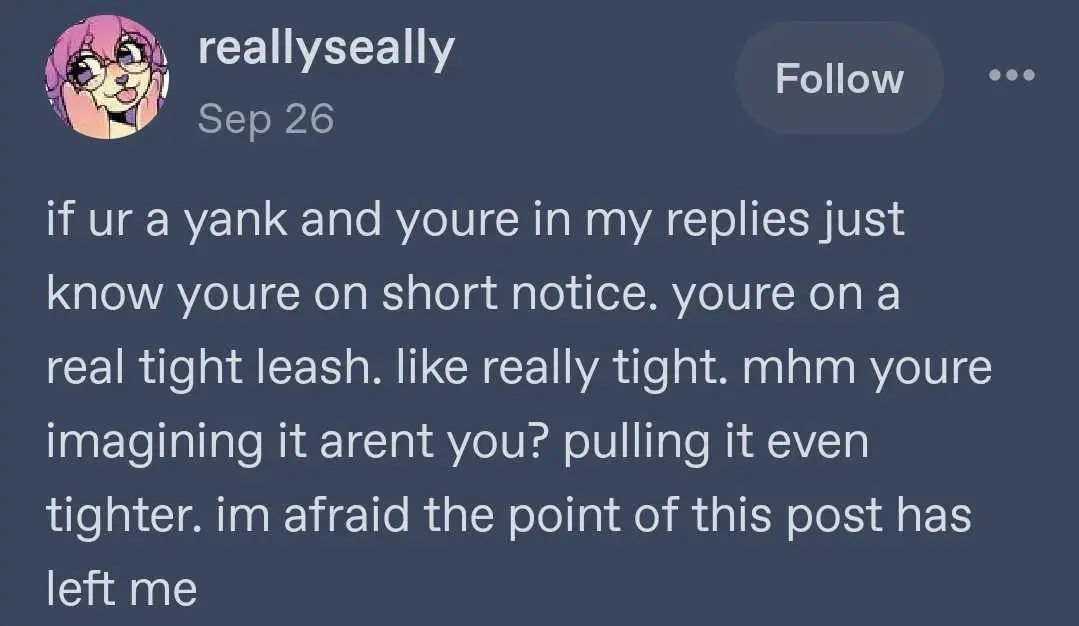 tgirlschierke@lemmy.blahaj.zone to 196@lemmy.blahaj.zoneEnglish · 3 days agoa message to americansNSFWlemmy.blahaj.zoneimagemessage-square9fedilinkarrow-up1163arrow-down12