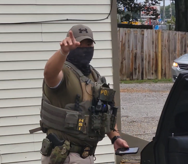 The image is a still from a video taken by Hunter Demster who was told he would have to move 25 feet away or face misdemeanor charges due to a TN law that went into effect in July.
