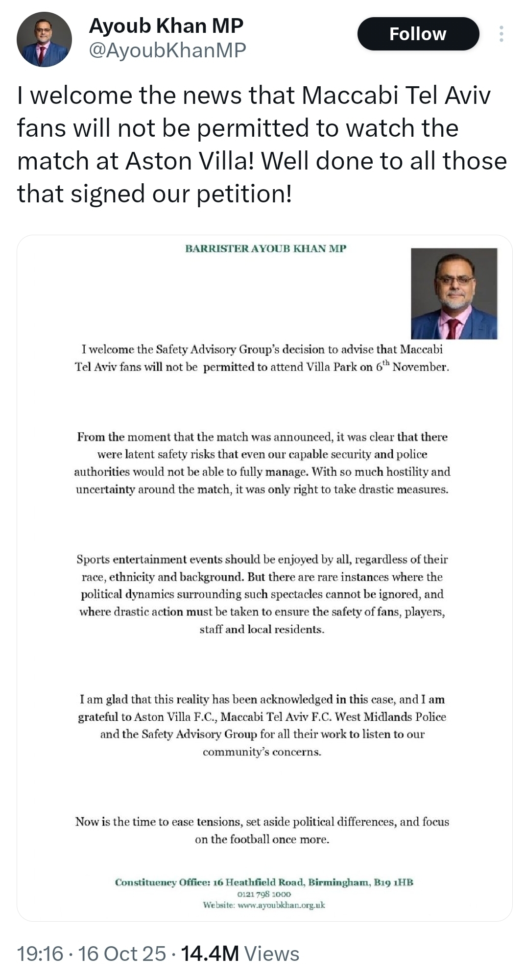 Podczas poprzednich spotkań w Europie, kibole Maccabi notorycznie wykrzykiwali rasistowskie hasła wobec osób pochodzenia Arabskiego i niebiałych, a gdy rok temu w Amsterdamie przegrali ustawkę z kibolami Ajax Amsterdam i lokalną ludnością… stwierdzili, że doszło do pogromu! 🤡