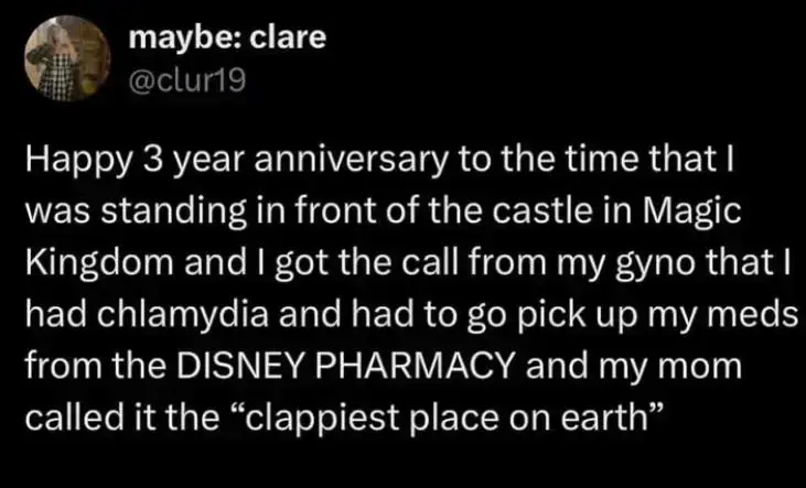 Now I finally get why they call it the clap! Cuz it’s such a happy disease!