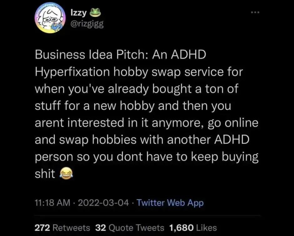 Stamets@lemmy.dbzer0.com to ADHD memes@lemmy.dbzer0.comEnglish · 11 days agoWho wants to go in on it with melemmy.dbzer0.comimagemessage-square136fedilinkarrow-up11.07Karrow-down110