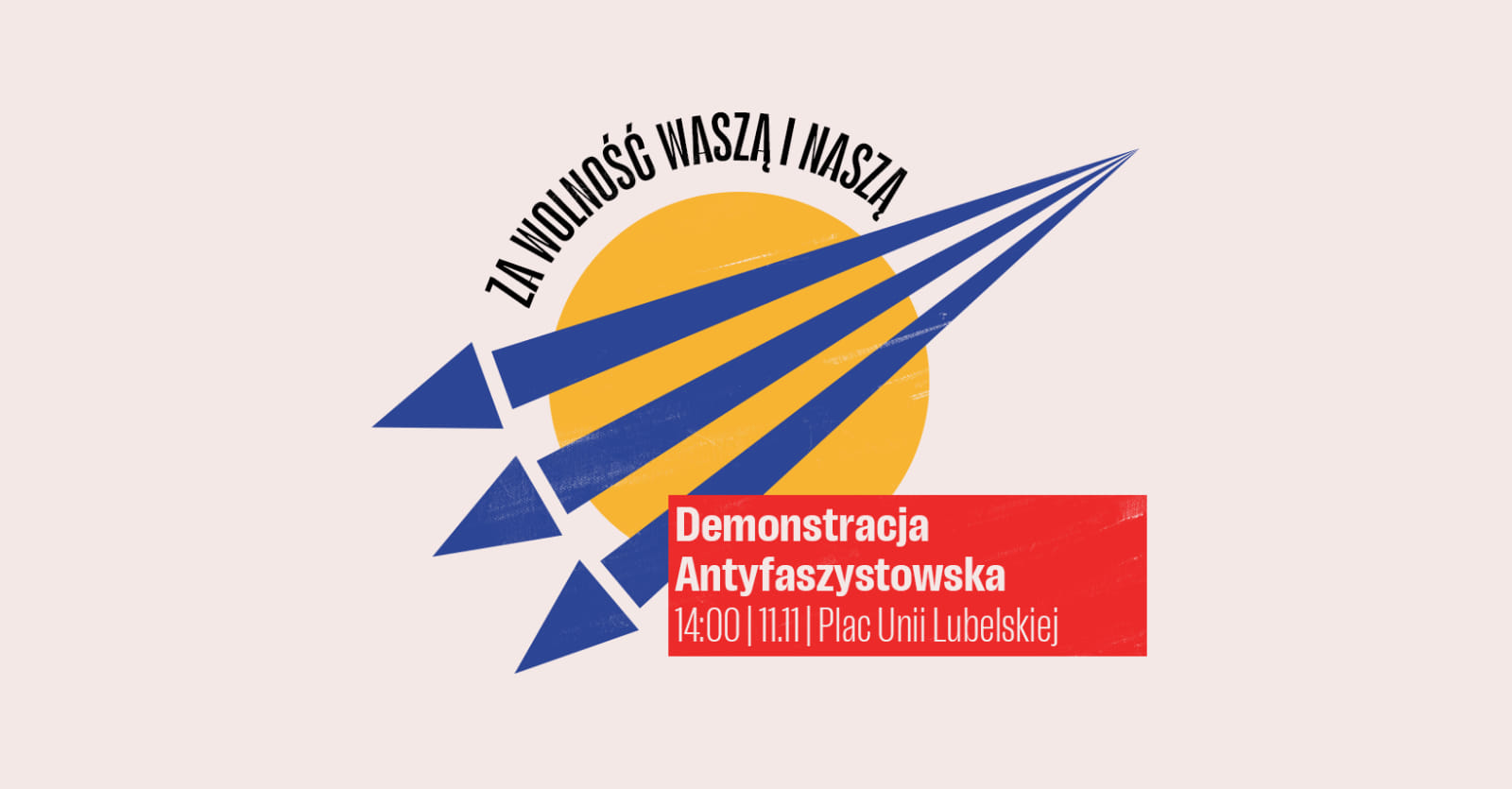 [ENG] Currently, there is a sense that the spectre of fascism lurks at every turn – from the statements of an increasingly broad group of politicians, through opportunistic media, to increasingly frequent far-right demonstrations. This leads many to feel powerless, but we must all seriously confront these threats – not only because it is morally right, but also because we have no other choice, as the victory of fascism would spell doom for us all. That is why, on 11 November at 2 p.m. at Plac Unii Lubelskiej, stand with us against hatred, ignorance and discrimination – stand on the side of humanity. Solidarity is our weapon!