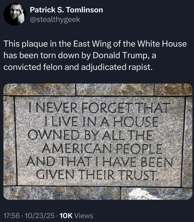 There is a difference between criticizing Trumps vanity and waste of funds and lionizes the presidency and the war criminals that have historically occupied it and a lot of these posts cross it. No the white house and the president are not good things they’ve always been symbols of massive oppression.