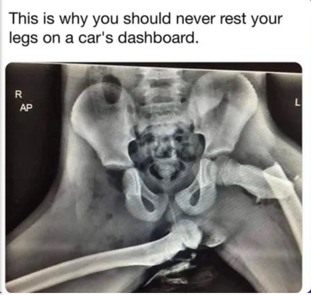 So they’ve broken their pelvis straight through about half way up, popped their right femur out of the socket, and split the left femur straight through near the top… yeah… that sucks