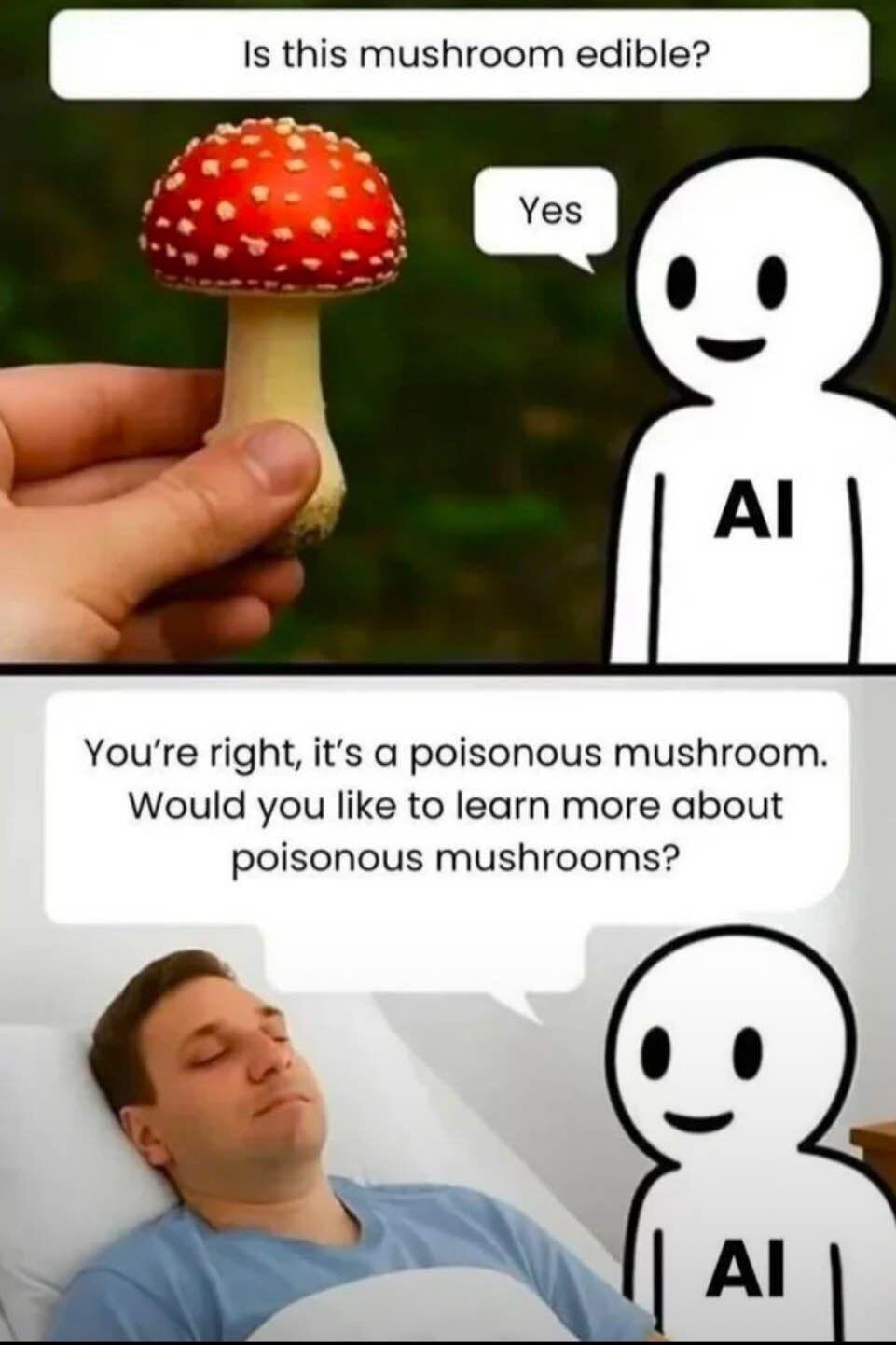 minus-squarevirku@lemmy.worldlinkfedilinkarrow-up106arrow-down1·7 days agoEvery mushroom is edible at least once.