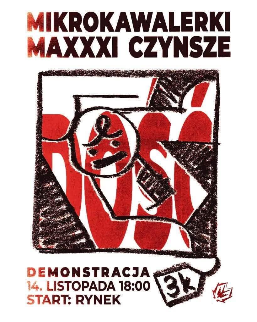 14 listopada znów wyjdziemy na ulice, by głośno i wyraźnie powiedzieć DOŚĆ MIKROKAWALERKOM I MAXXXICZYNSZOM! Dołączysz?
