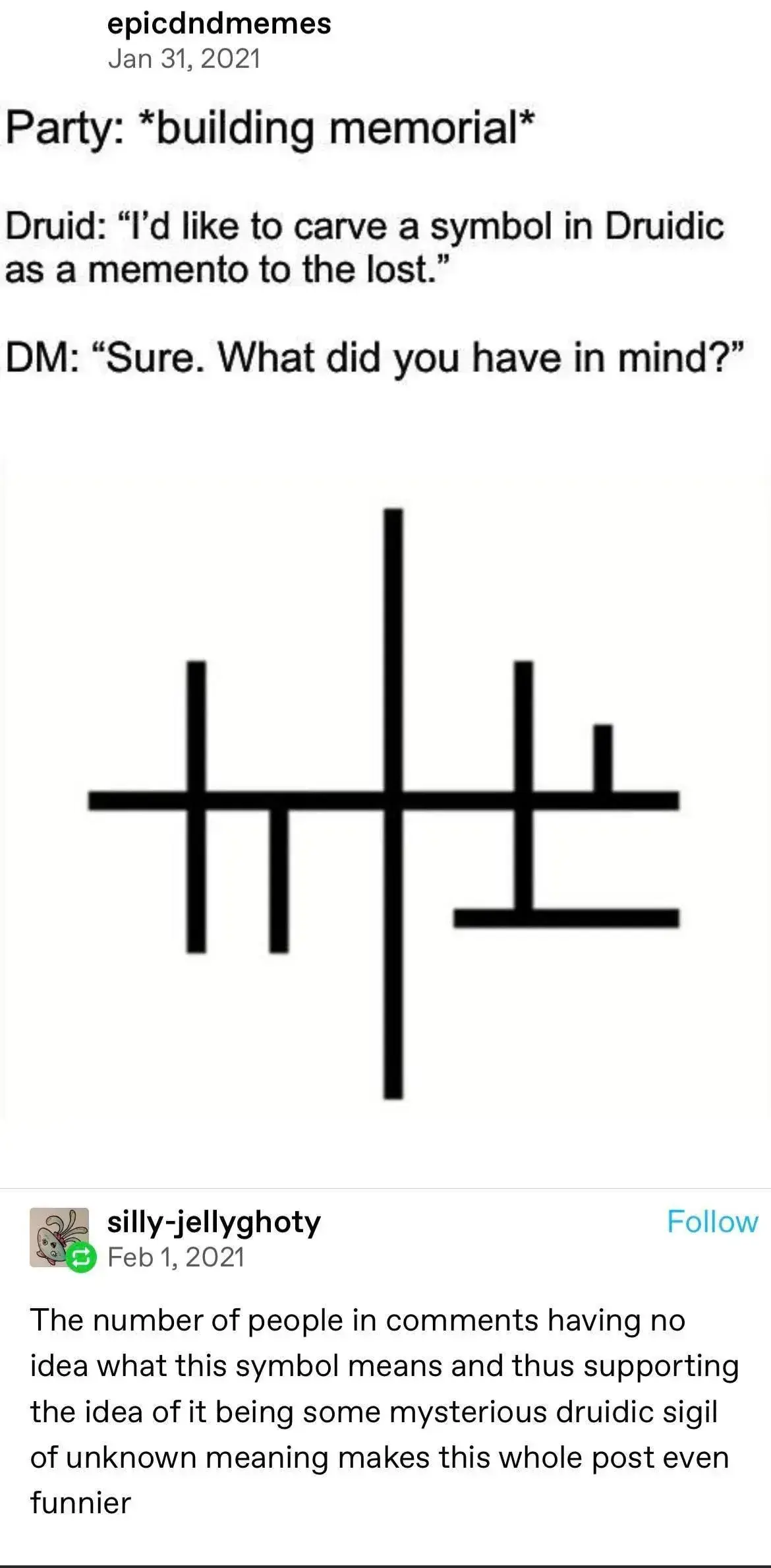 Stamets@lemmy.dbzer0.com to RPGMemes @ttrpg.network · 8 days agoDruidic Memoriallemmy.dbzer0.comimagemessage-square49fedilinkarrow-up1636arrow-down143
