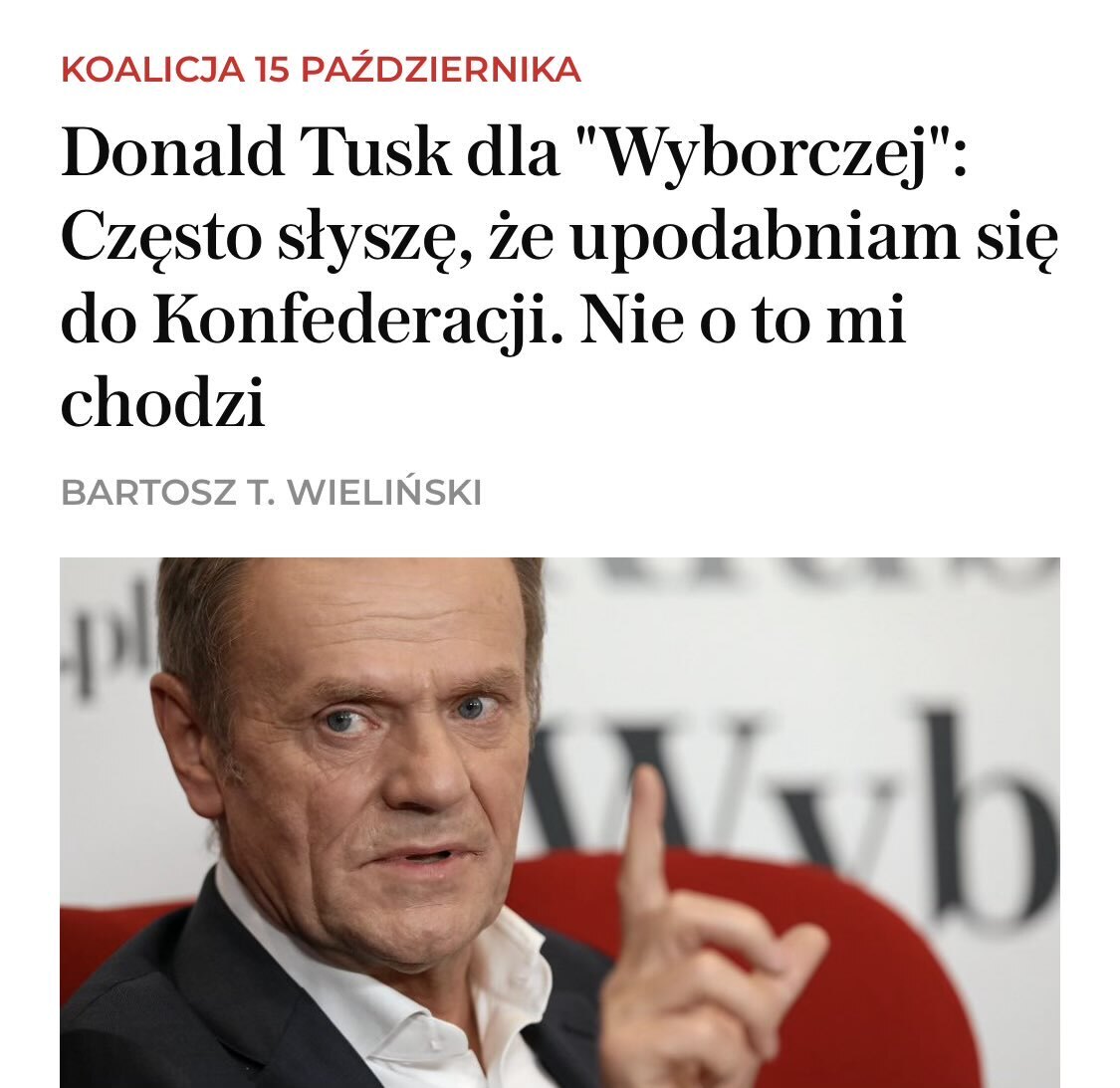 Donald Tusk dla “Wyborczej”: Często słyszę, że upodabniam się do Konfederacji. Nie o to mi chodzi.