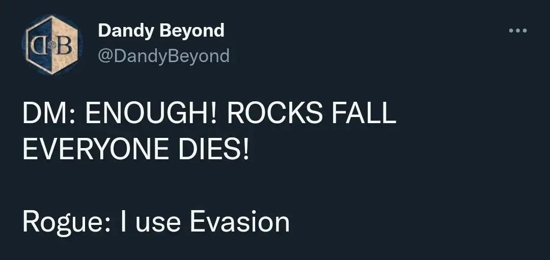 God’s damnit! That would have been so much better than what I actually said, which was, “I’m Baaaaack!” Right before I blasted him in the face with Unfailing Missiles. 102 points of Sonic/Force damage later, and he was doing poorly enough that my Monk immobilized him, and my Fighter used her Keen, Vorpal, +1 Katana to behead the guy.