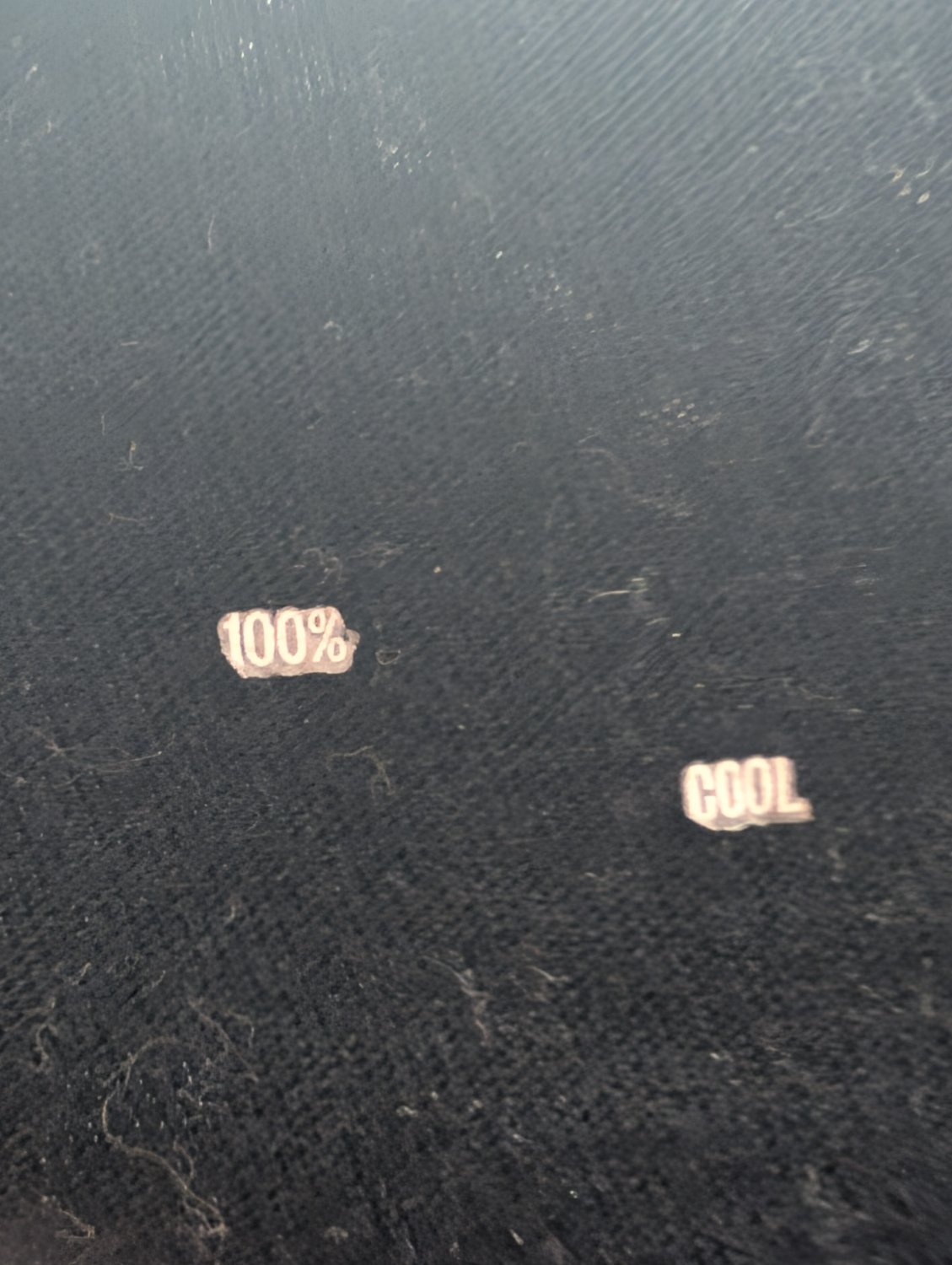 I think it was care instructions. “100% cotton”, for instance. “Machine wash cool”.