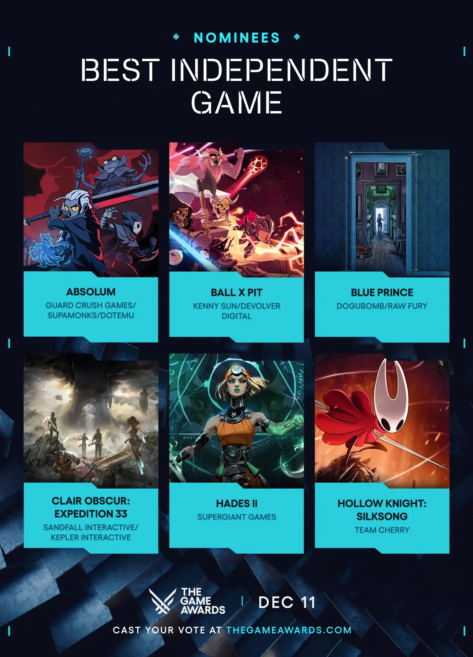 thelastaxolotl [he/him]@hexbear.net to Games@hexbear.netEnglish · 4 days agoGame Awards best indie game nominationshexbear.netimagemessage-square19fedilinkarrow-up136arrow-down10file-text