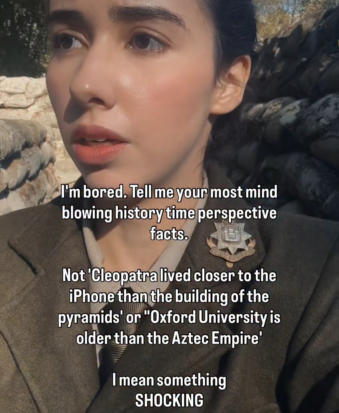Some other stuff: Mamoths were still alive when the Pyramids were being built.
