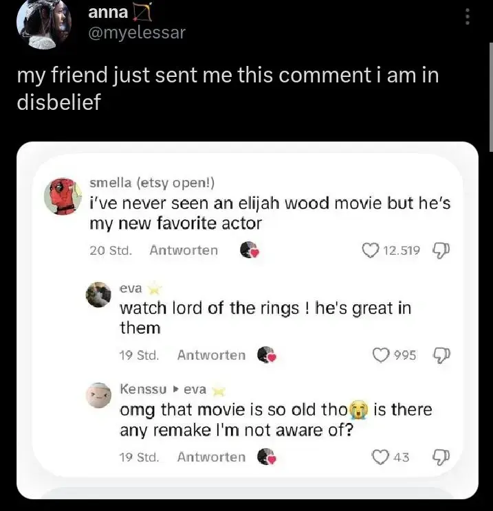I know a highschooler that won’t watch anything from before 2000, won’t watch lotr for other reasons like broken attention span.