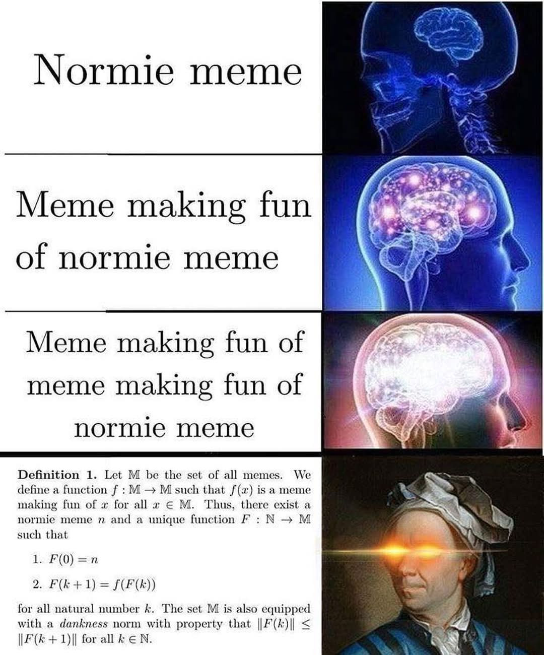 I could be wrong, but I’m fairly sure that, while ‘f’ is a function, ‘f(x)’ is the function’s output, not the function itself. So f(x) is a meme (as.long as x is a meme), because function f’s output is a meme. The function itself is a mathematical operation, not its output.
