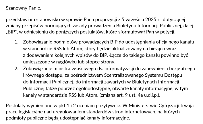 Oznacza to, że (według mojej wiedzy) Polska będzie jednym z pierwszych krajów Unii Europejskiej, która prawnie nakazuje wdrożenie kanałów RSS na stronach rządowych i samorządowych.