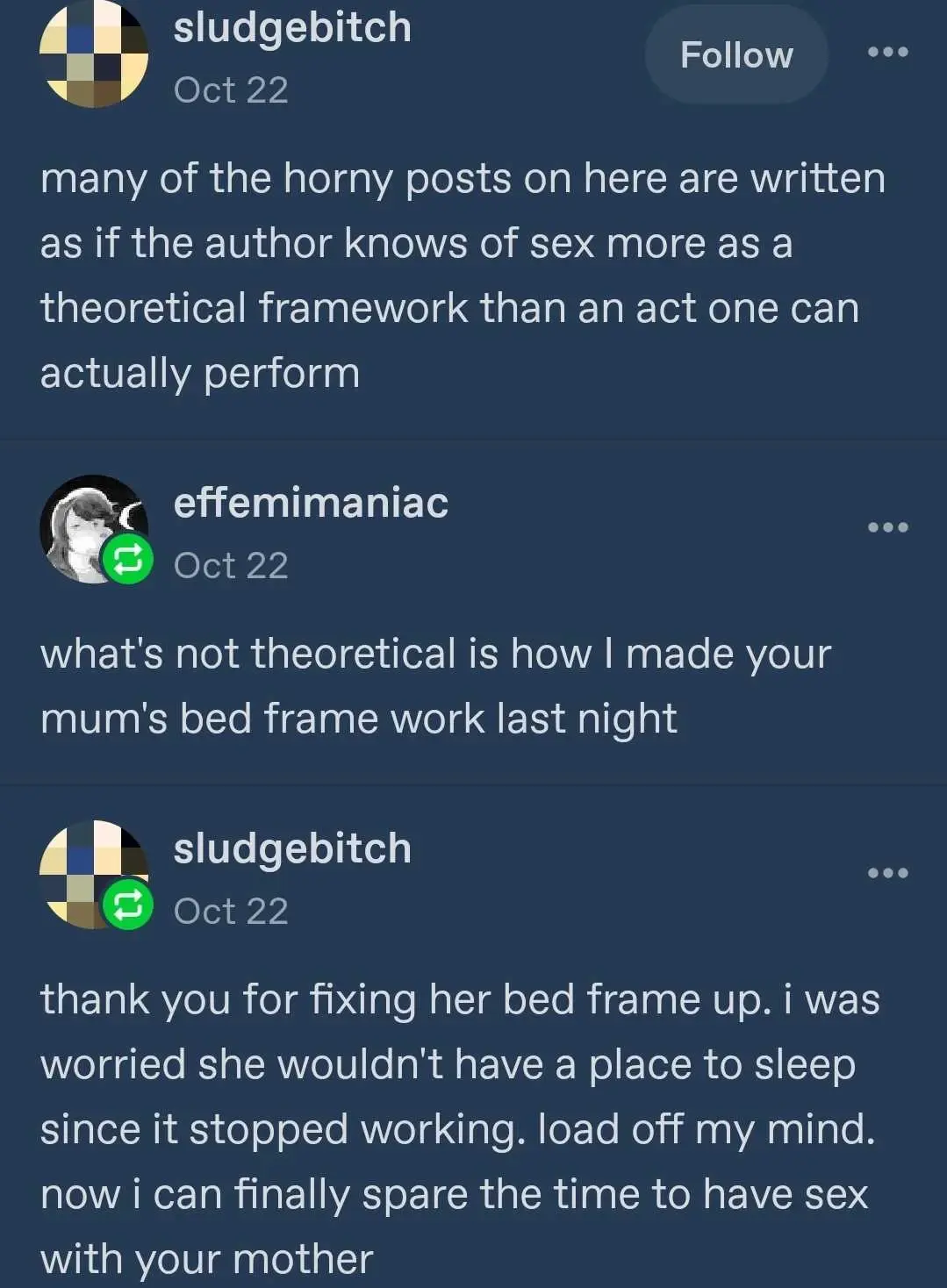 I hate that I thought sludgebitch was gonna say that they could now fuck their own mum again.