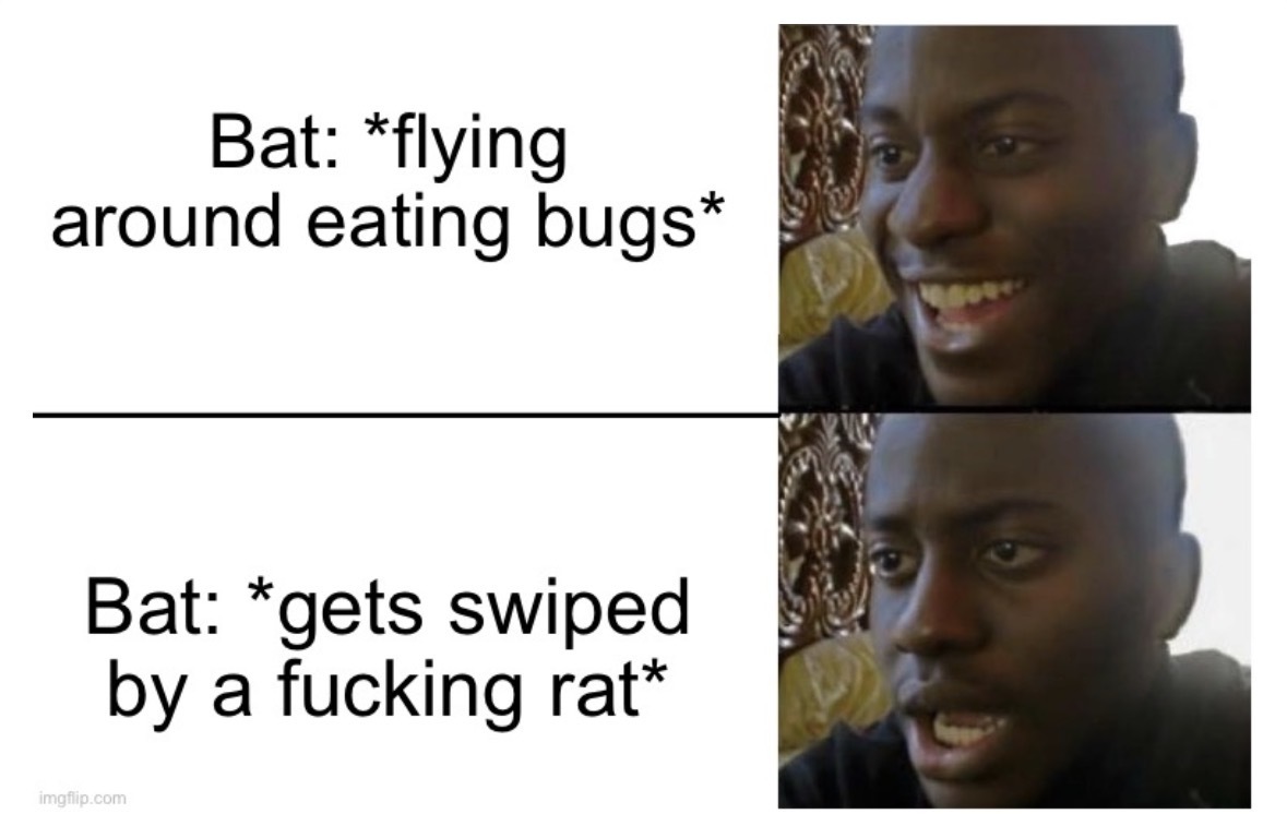 arrow-up1129arrow-down1imageBats bewaresh.itjust.workscapybeby@sh.itjust.works to Science Memes@mander.xyzEnglish · 13 hours agomessage-square8fedilinkfile-text