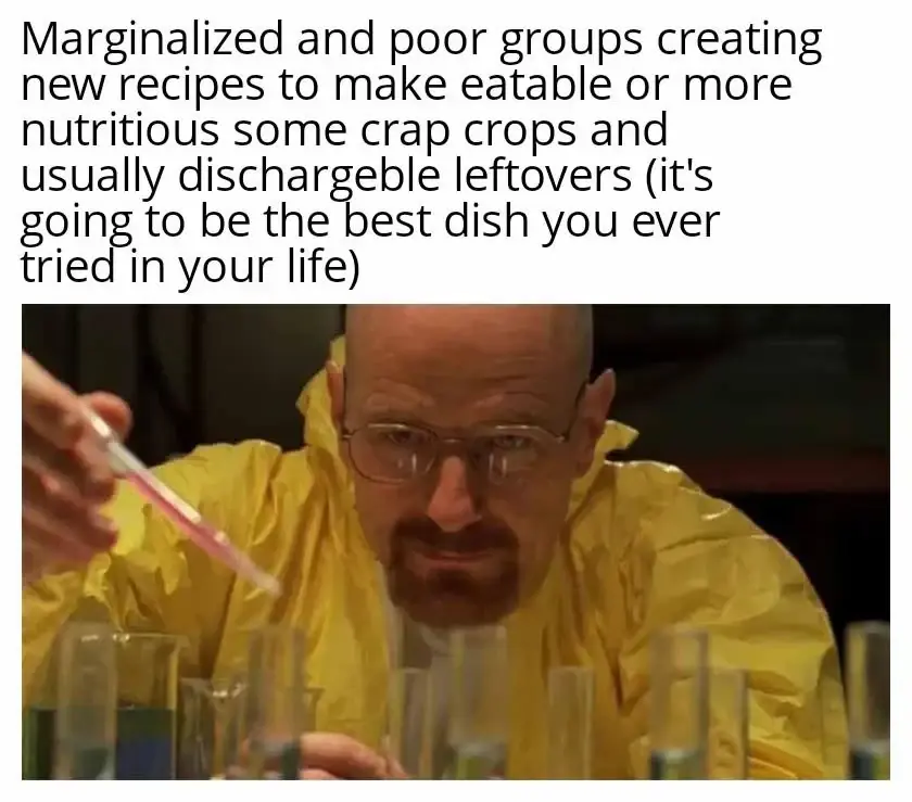 Trying to remember what they called it in Cyberpunk 2077 when you make a more complex meal by mixing pre-made, pre-packaged food as ingredients instead of as a meal in and of themselves… 🤔