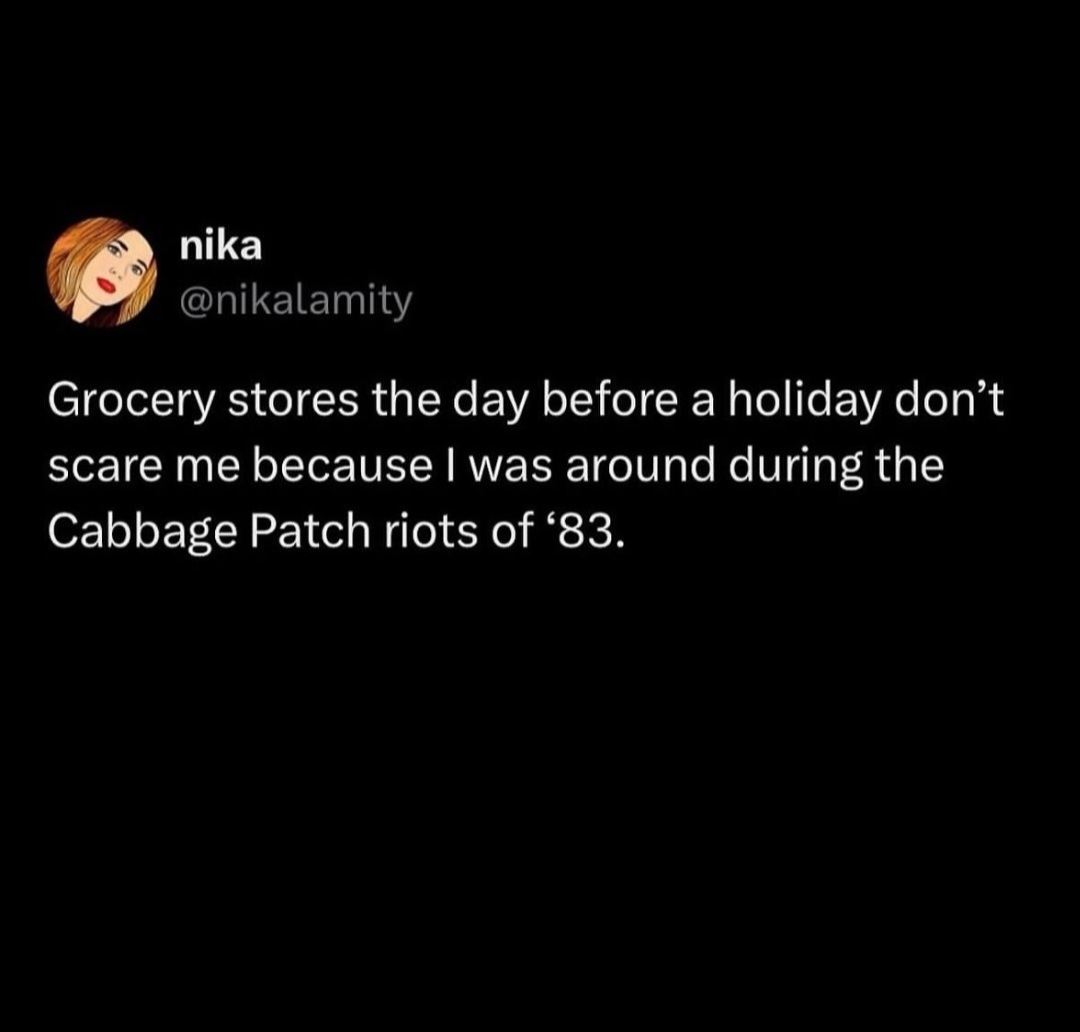I was a kid for some of these and not only did I, as a kid, have no interest in any of those wild fads that caused carnage in the stores, I didn’t know any other kids who were interested in them, either. Maybe tomagachi and pokemon; but I don’t remember seeing people fighting over those on the news. I might have been too into my tomagotchi and pokemon to have noticed. 🤔