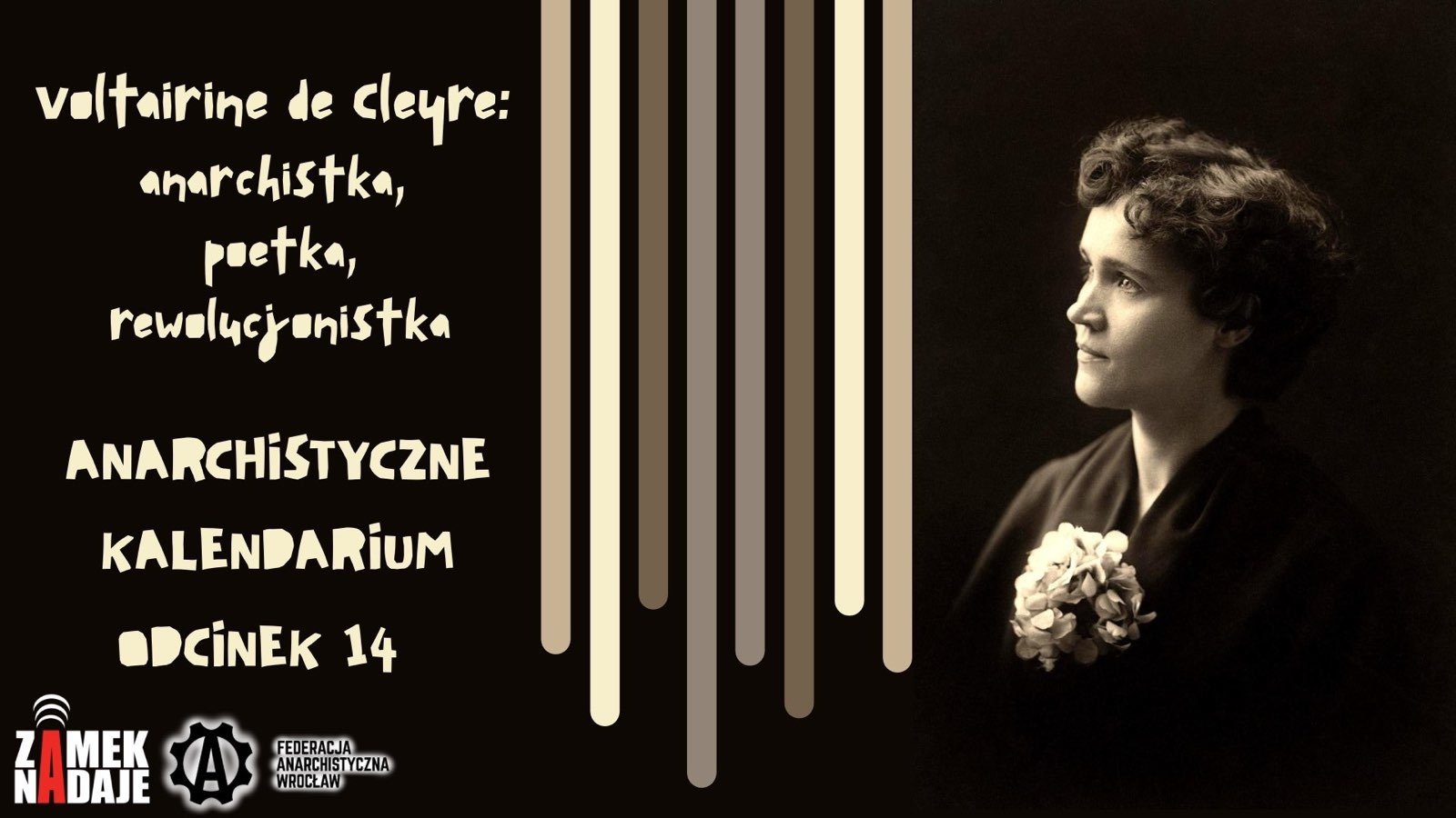 W tym odcinku zostanie poruszony temat wybitnej anarchistki, poetki i rewolucjonistki Voltarine de Cleyre. Jest ona ważną częścią dość niedocenianej żeńskiej sceny filozofii anarchistycznej. Z początku anarcho-indywidualistka, ostatecznie zwolenniczka “anarchizmu bezprzymiotnikowego”.