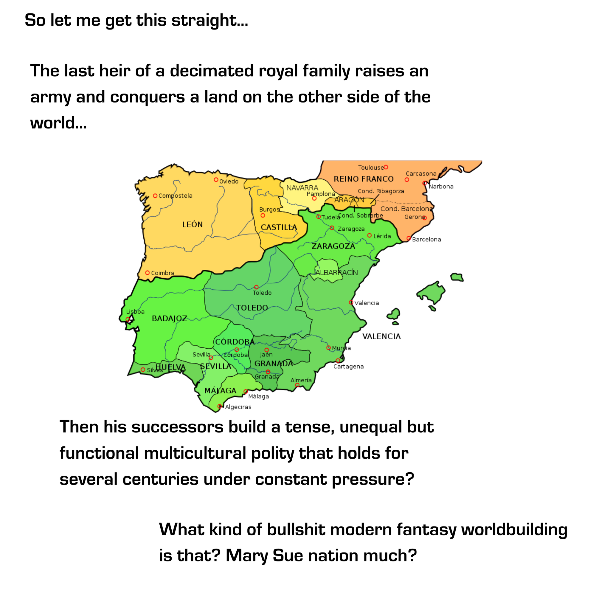 Explanation: Al-Andalus is the commonly accepted name for the loosely-aligned Muslim polities of Spain before the Christian Reconquista. Despite being chauvinist by modern standards, relative to the time, Al-Andalus was largely multicultural and tolerant of other (Abrahamic) faiths.