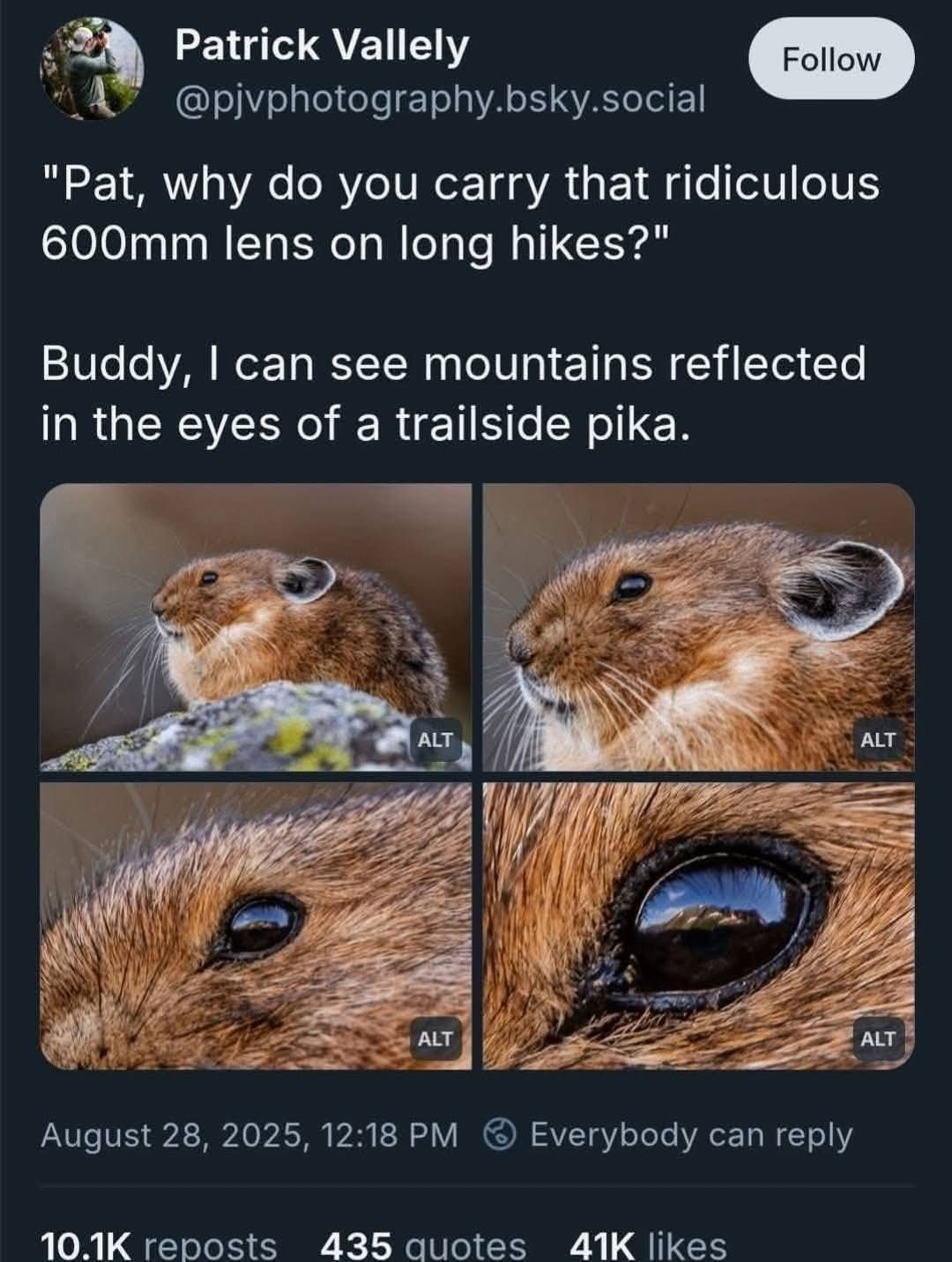 I get the point but there is no way my phone camera can capture the mountains reflected on the eyes of any animal even on full daylight