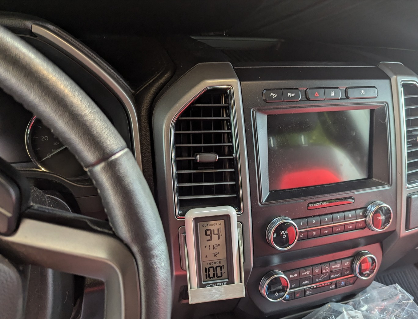 I have an indoor/outdoor thermometer to keep track of how hot the back of my Expedition gets. I drive pretty regularly with two dogs in the back, and over the summer and winter the temps can get a little extreme.