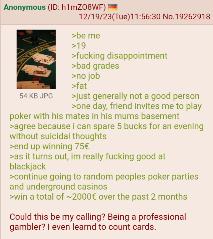 🍹Early to RISA 🧉@sh.itjust.worksM to Greentext@sh.itjust.works · 2 years agoAnon plays pokersh.itjust.worksimagemessage-square29fedilinkarrow-up11arrow-down10