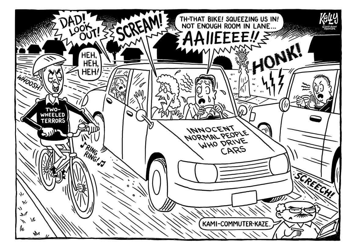 People on bikes may be rude and may not follow the rules, but can’t be aggressive.