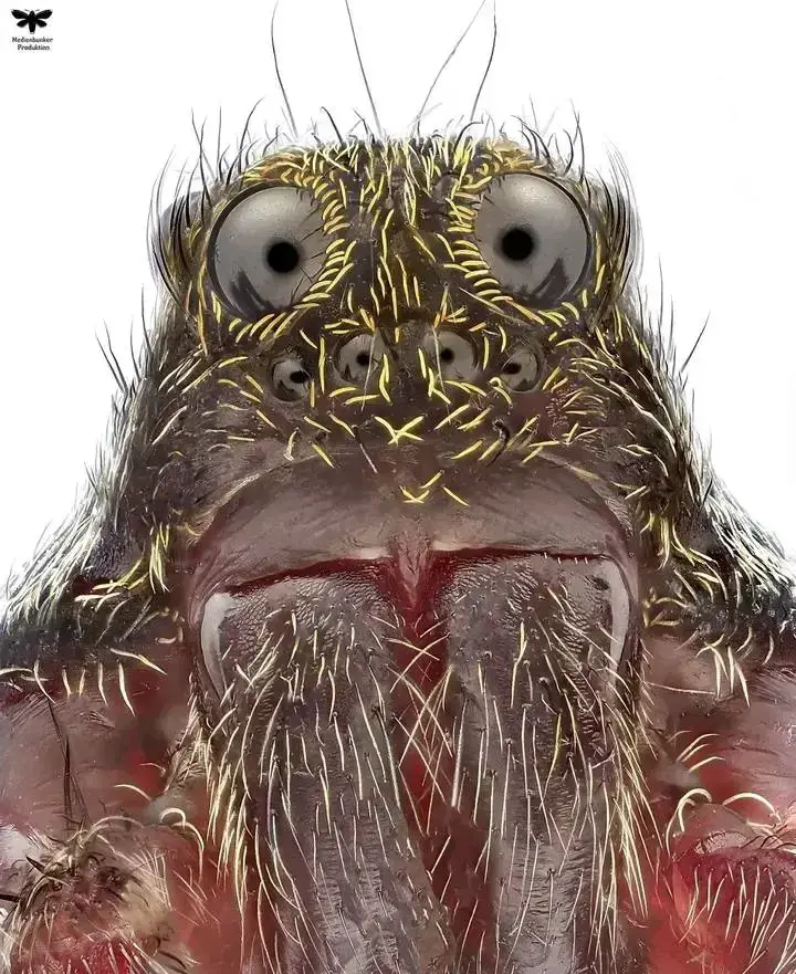 A wolf spider’s passport photo—up close and personal at 20X magnification! 🕷️ 📸 Credit: Medienbunker Produktion