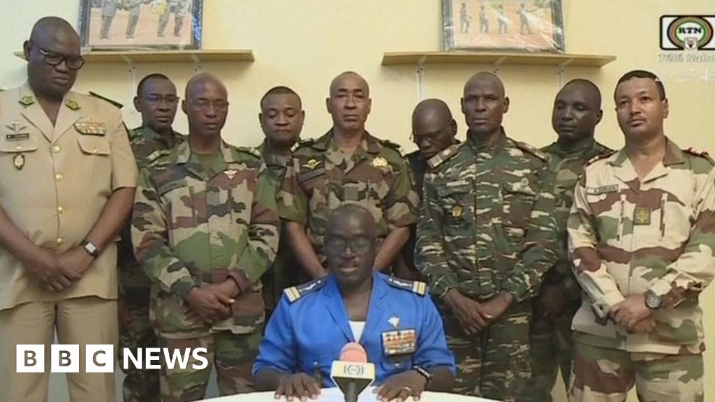 misk@lemm.ee to worldnews@sh.itjust.worksEnglish · 2 years agoNiger soldiers declare coup on national TVwww.bbc.co.ukexternal-linkmessage-square0fedilinkarrow-up118arrow-down10cross-posted to: globalnews@lemmy.zipworld@lemmy.worldnews@beehaw.orgworldnews@lemmy.ml