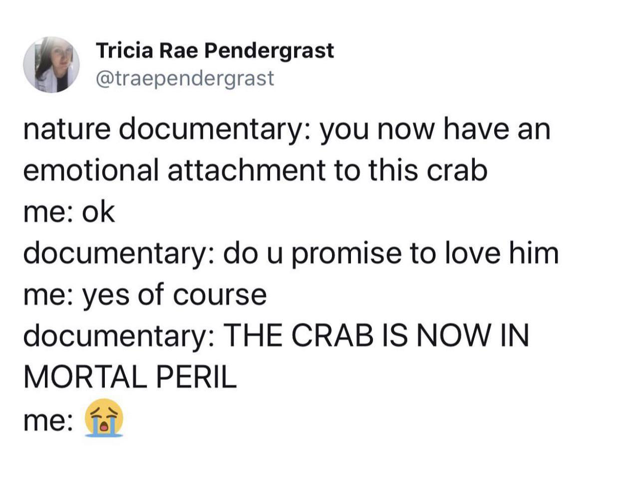 Damn, that octopus doc where he was like, “this bitch going to die any day now.” Why you make me love her?