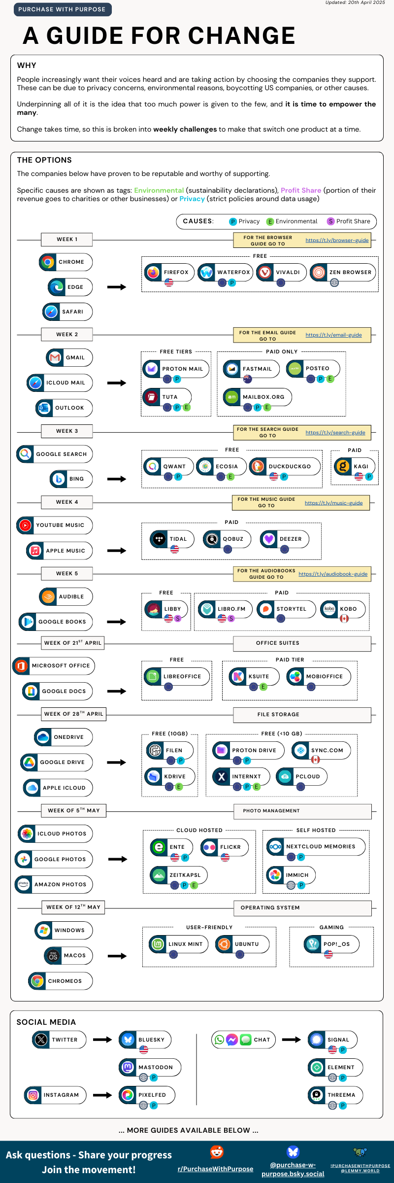 FallenWalnut@lemmy.worldM to PurchaseWithPurpose@lemmy.world · 8 months agoThe Full Guide for Change (Redone with OSs added!)lemmy.worldimagemessage-square11fedilinkarrow-up152arrow-down14