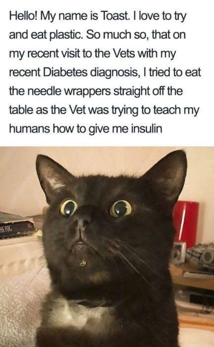 Since this cat was getting diagnosed with diabetes I think it’s a safe bet they identified the cause of the plastic chewing.
