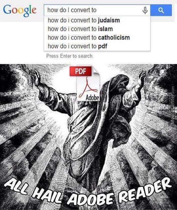 If PDF is the religion, wouldn’t god be adobe and adobe reader just be a prophet?