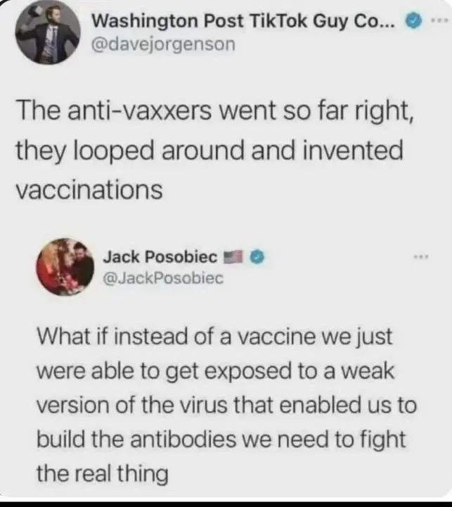 They’ll say that’s not how the covid vaccine works, which is true. They’re still dumb though