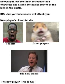 I think where the line gets crossed is when they’re doing actions their character would never do, or they’re trying to poke holes in the set without a clear goal. I usually ask additional questions to see what they expect to happen (in case they are playing 4D chess), but sometimes they’re just trying to cause chaos, in which case I got to pull them aside and give them the talk.