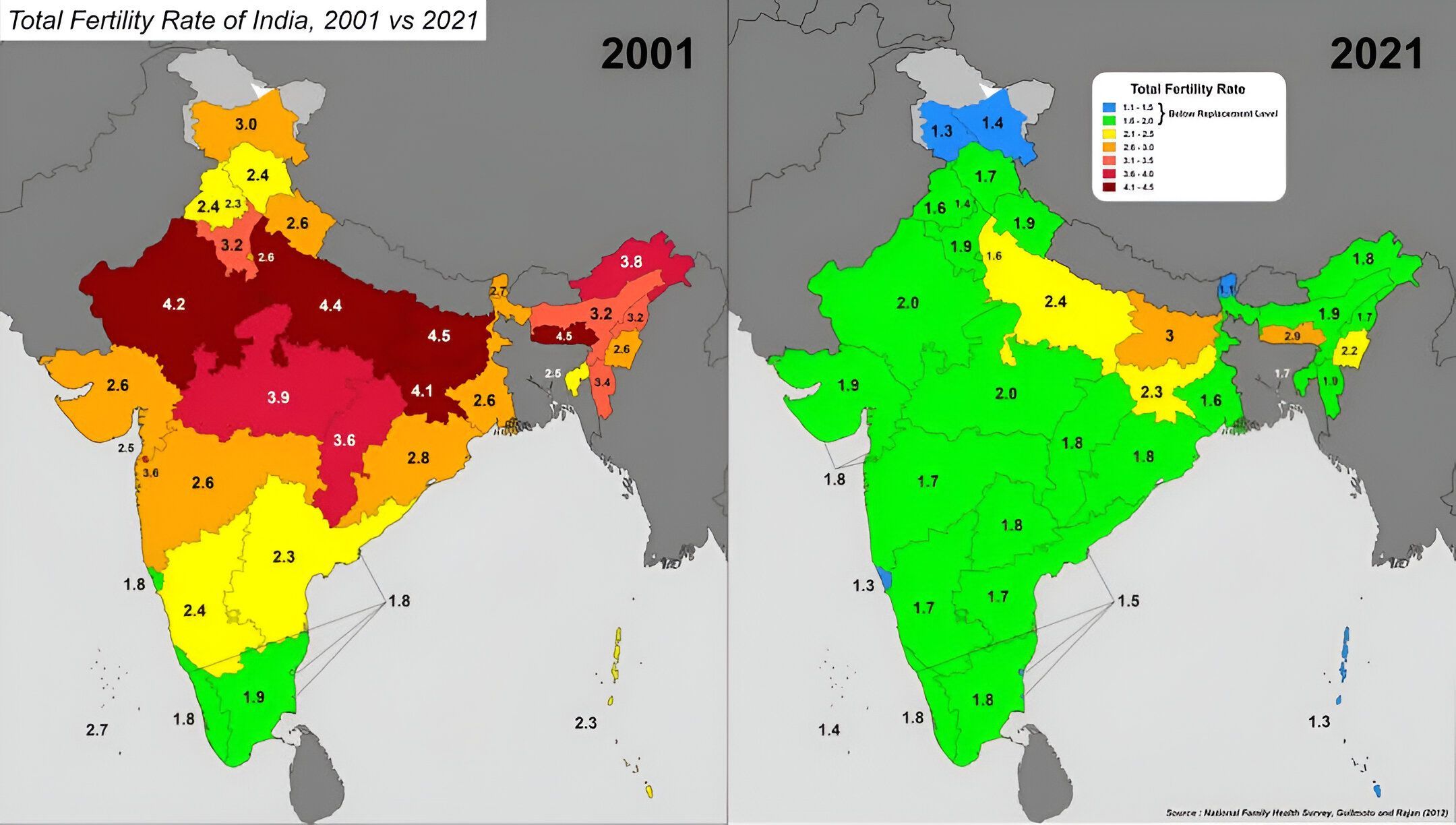 "India’s fertility rate has fallen substantially - from 5.7 births per woman in 1950 to the current rate of two.