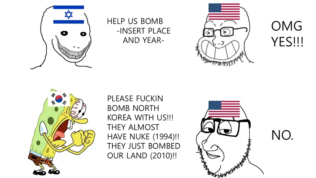 I’m getting that this is part in jest but for those equating Israel to South Korea, in any sense but especially military risks: you’re an idiot