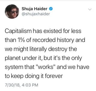 why are people pointing out the material reality of capitalism destroying the planet, don’t they know that is just the nature of things? Only idiots use memes to blame systems of oppression for the suffering of billions.