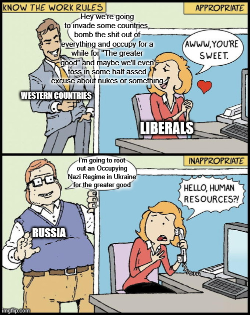 jackeroni@lemmy.ml to Memes@lemmy.ml · 4 months agoLiberals: its ok as long as the west does it! 😁lemmy.mlimagemessage-square17fedilinkarrow-up134arrow-down1145