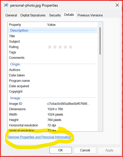 4. Remove properties and personal information
