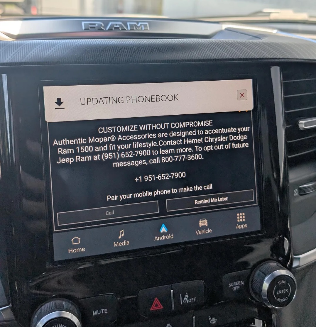 Well folks, it finally happened. The screen in your pickup truck… your last bastion of peace from the chaos of unskippable advertisements… now plays popup ads. Not even subtle ones. We’re talking full-dash, head-unit-commandeering infomercial panels in your RAM 1500, like you’re driving a Times Square billboard on wheels.